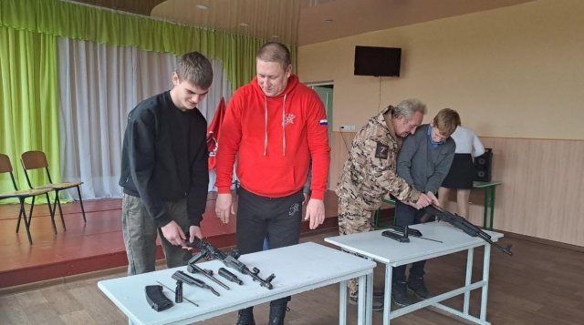 У школах лівобережжя окупанти не перестають проводити різноманітні «патріотичні» заходи, під час яких не лише засмічують учням мізки своєю пропагандою, а й навчають користуватись зброєю.