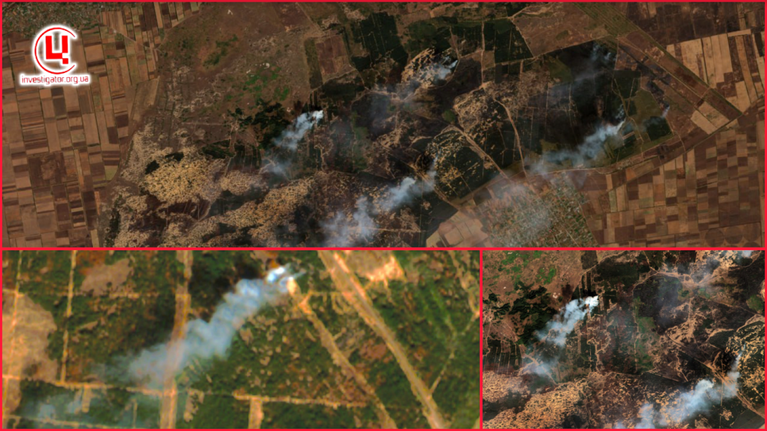 На тимчасово окупованій території Херсонськоі області – одразу кілька масштабних пожеж і щодня розміри згарищ зростають. Наразі вже четверту добу вогонь охоплює хвойний ліс НПП «Олешківські піски» і відучора – степову зону узбережжя Чорного моря на загальній площі близько 140 кв км.Про це повідомляє кореспондент Центру журналістських розслідувань Сергій Старушко.