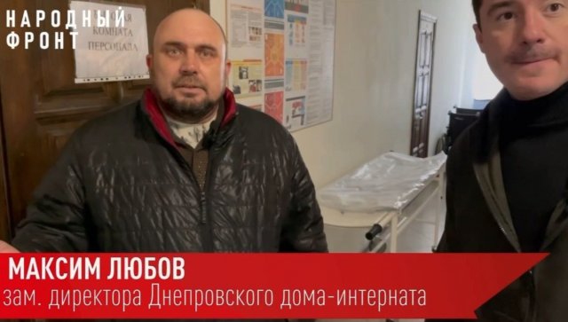 Якийсь Максим Любов з назвою окупаційної посади «заступник директора Дніпровського будинку-інтернату» розповів на камеру, що заклад має проблеми з хлібом, який навіть змушені брати у військових. Договір з хлібозаводом на поставку хліба в інтернаті укласти не можуть, бо немає фінансування. Крім того, ще з минулого року у закладі не закриті борги за поставку медикаментів і пально-мастильних матеріалів.«Не знаю з чим це пов’язано, але фінансування кульгає», - «пом’якшив» сказане Максим Любов.