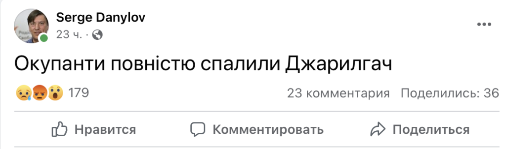 За словами Сергія, “Джарилгач згорів повністю”. Але це не зовсім так.