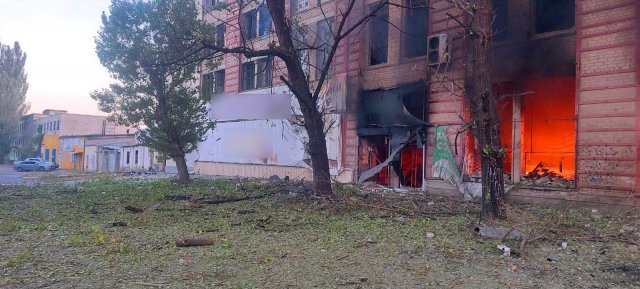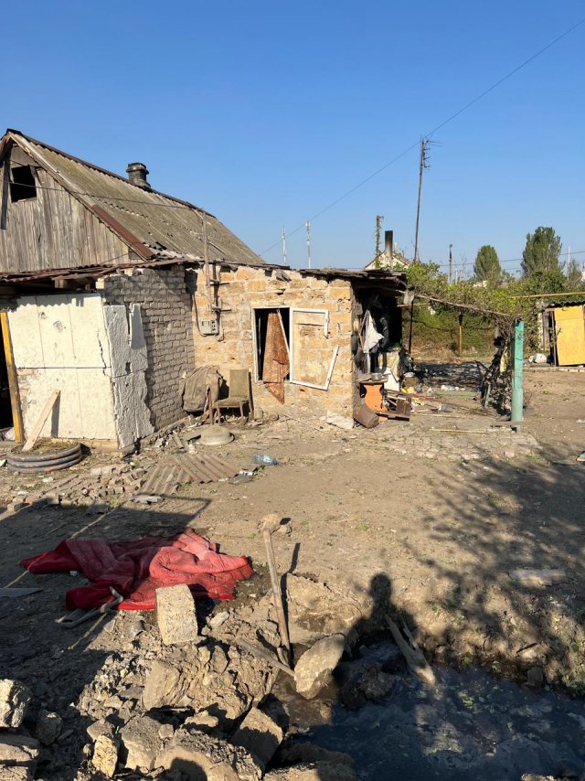 Військові рф скинули боєприпаси з дрона на житлові квартали Берислава, поранення отримав 33-річний працівник поліції Дніпропетровської області. У нього мінно-вибухова травма та уламкове поранення плеча. Місто зазнало ударів і з ворожої авіації, через вибухи керованих бомб пошкоджена лікарня, 14 приватних будинків, поранено 72-річну жінку.