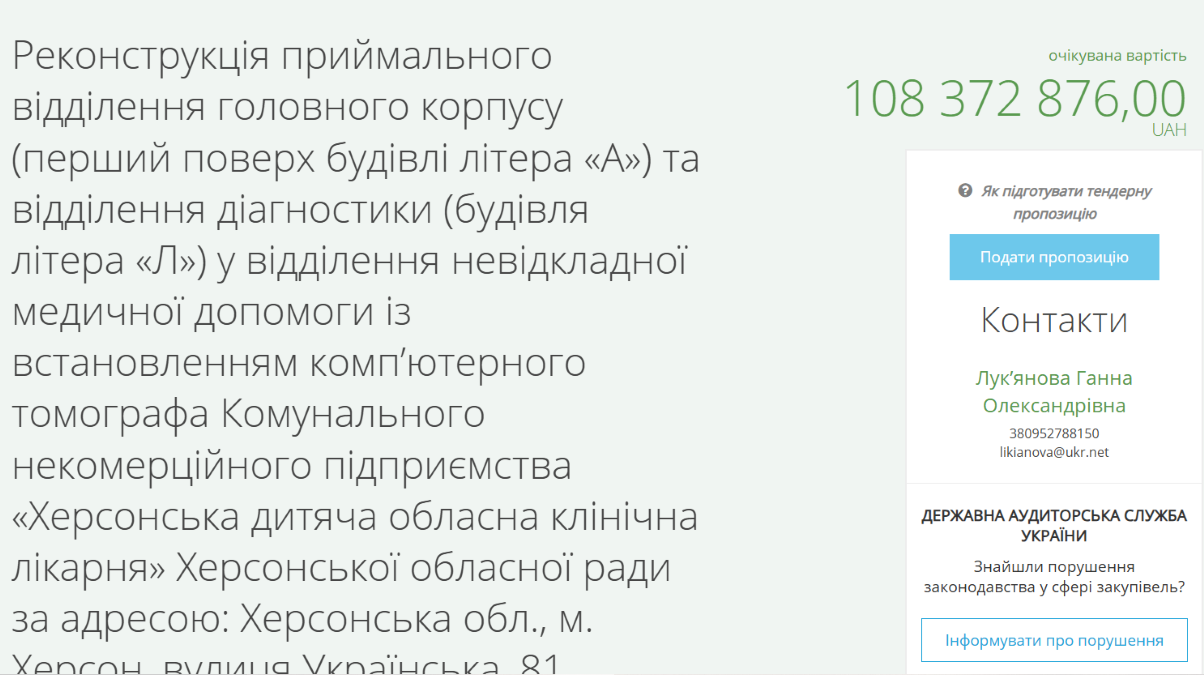 Замовником робіт виступило комунальне некомерційне підприємство "Херсонська дитяча обласна клінічна лікарня". Обраний підрядник має завершити роботи до 25 грудня 2026 року.