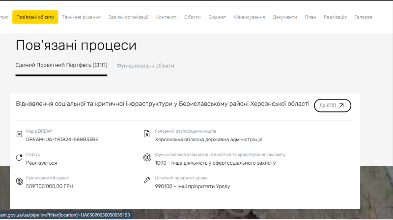 Проєкт внесено до Єдиного проєктного портфеля DREAM. Він відповідає плану відновлення громади, регіональній стратегії розвитку Херсонщини на 2021–2027 роки й державній стратегії регіонального розвитку.Також у селі Борозенське на Херсонщині розпочали масштабну реконструкцію водопроводу, яка постраждала внаслідок обстрілів. Частину коштів на реалізацію — орієнтовно 188,6 мільйона гривень — надала Німеччина. Завдяки проєкту планують забезпечити стабільне водопостачання для 1840 мешканців і 17 установ.