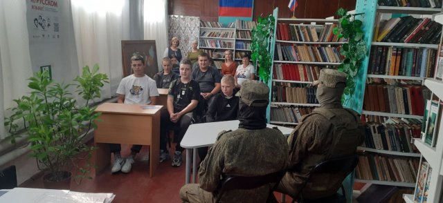 Раніше телеграм-канал «Astra» повідомляв, що саме такими словами відповів один з окупантів на запитання учнів середньої школи: «Чи легко вбити людину?» Невідомо, чи ставлять такі питання юні жителі окупованого лівобережжя, але окупанти до них приходять. І не лише у школи. «У Василівській бібліотеці відбулась зворушлива і щира зустріч дітей з учасниками спеціальної військової операції, - написала у соцмережі окупаційна адміністрація Каховського «муніципального округу». - Гості -бійці поділились своїми особистими історіями мужності і відданості батьківщині, розповіли, як прийшли до рішення стати учасниками СВО». Причому, робили, це, як видно з фото, ховаючи обличчя під балаклавами.