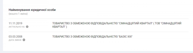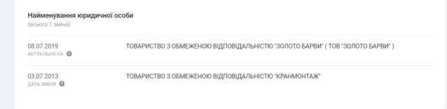У 2019 році і ТОВ «БАЗІС ХХІ», і ТОВ «КРАНМОНТАЖ» змінили свої назви: їх можна знайти хіба що за ЄДРПОУ. Однак, в аналітичній системі YouControl ці зміни добре видно. Тепер ТОВ «БАЗІС ХХІ» має назву «Сімнадцятий квартал», а ТОВ «КРАНМОНТАЖ» — ТОВ «Золото барви». Так зазвичай роблять для того, аби «очистити» історію згадок у пошукових системах.
