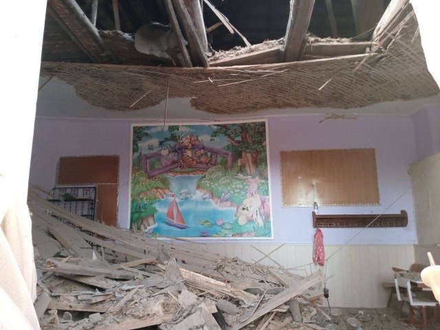 Учора надвечір окупанти вдарили по Велетенському. Поранення отримав чоловік 1958 року народження.Також під вогнем був Кізомис. У селі влучання у початкову школу. Наслідки обстрілу освітнього закладу – на фото.