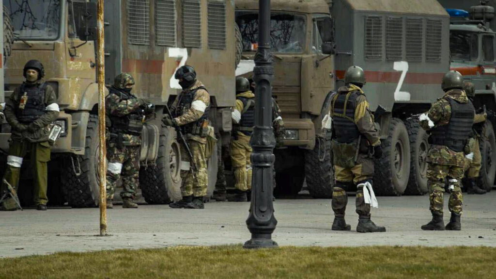 Російські військові у Херсоні. Фото надане виданню “Ґрати” Олександром ГеращенкомПевний час наче нічого не відбувалось, а ближче до весни-літа, за словами Олексія, до них почали привозити ув’язнених із інших колоній і СІЗО в регіоні.