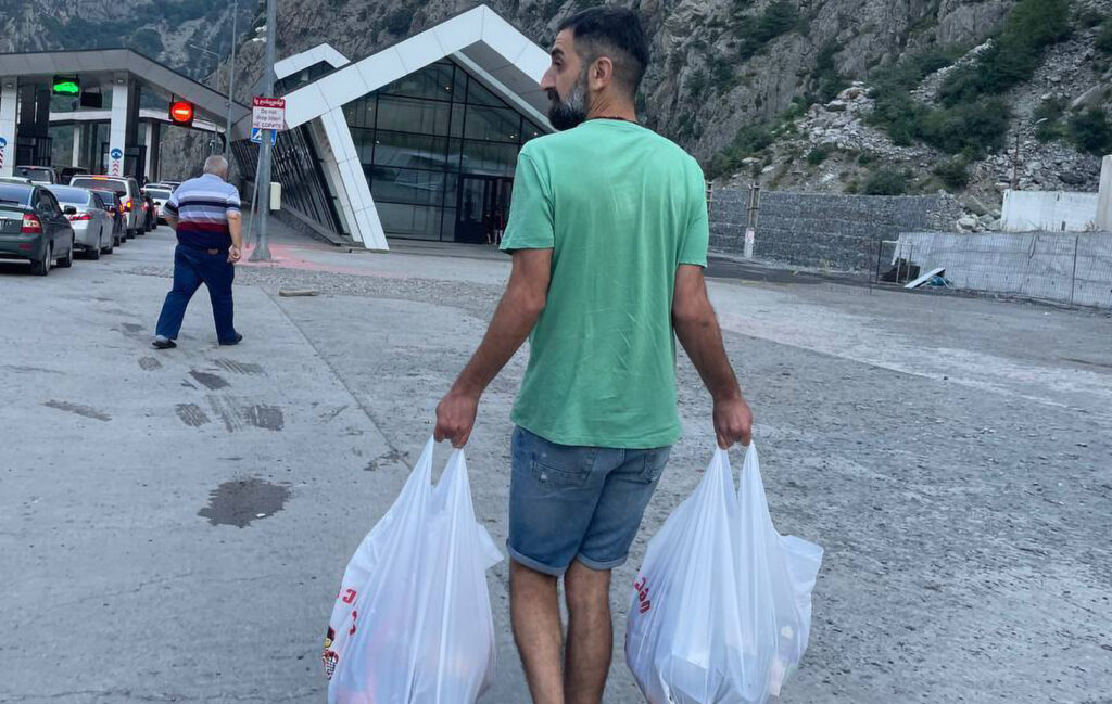Активісти об’єднання «Волонтери Тбілісі» несуть їжу українцям на кордоні. Фото з соціальних мереж «Волонтерів Тбілісі»Найскладніше — тим людям, у кого, крім довідки про звільнення, немає інших документів, зауважує Бєлкіна. Таких, за її спостереженнями, більше половини із тих звільнених з ув’язнення, хто опиняється на грузинському кордоні. Щодо них грузинська сторона подає запит українським дипломатам, а ті мають підтвердити її особу.
