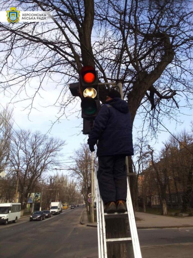 Також проведено технічні роботи на 5-ти світлофорних об’єктах: проспект 200-річчя Херсона/вулиця Джона Говарда, Миколаївське шосе/провулок Козацький, вулиця Михайла Грушевського/провулок Козацький, проспект Незалежності/вулиця Іллі Кулика та проспект Незалежності/вулиця Українська.