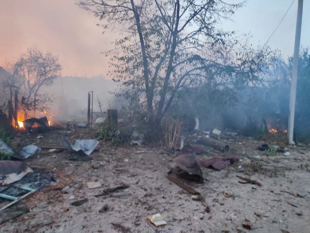 На фото - наслідки чергового удару армії рф по Бериславу. На домівки людей ворог скинув 4 керовані авіабомби.