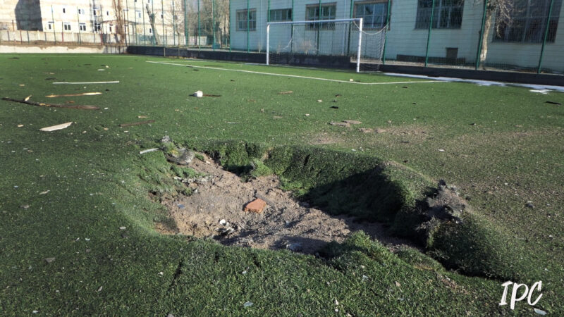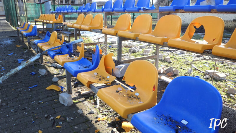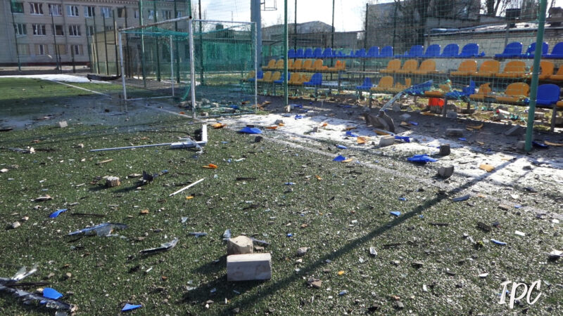 Футбольне поле в Херсоні, яке росіяни вважають чи то “базою НАТО”, чи то “табором іноземних найманців”. Спортивний об’єкт вже кілька разів потрапляв під обстріли окупантів. Ніякої логіки, окрім бажання просто знищити все, що їм не належить, в ударах по цьому футбольному полю немає.