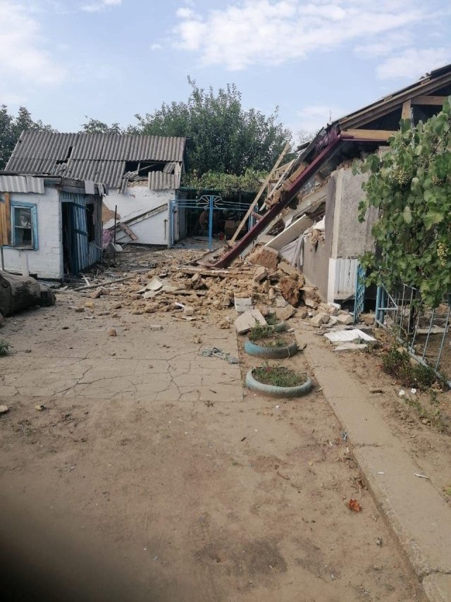 Наслідки сьогоднішніх російських дронових ударів по житловому будинку у селі Дудчани