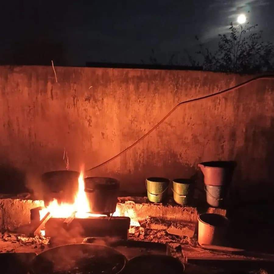 Волонтери на відкритому вогні готували їжу для тварин під час окупації Херсона. Фото надане для ZMINA.
