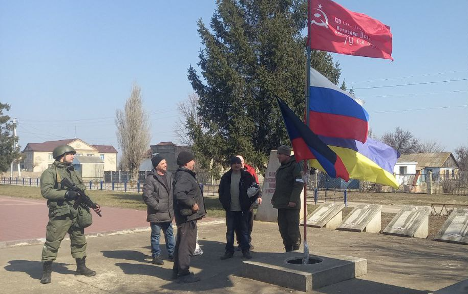 Сурен Мкртчян (в центрі) в окупованому Миловому, березень 2022 року Фото: myrotvorets.center