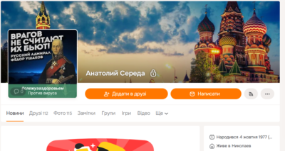 Як видно зі сторінки Анатолія Середи в соцмережі, він має проросійські погляди.