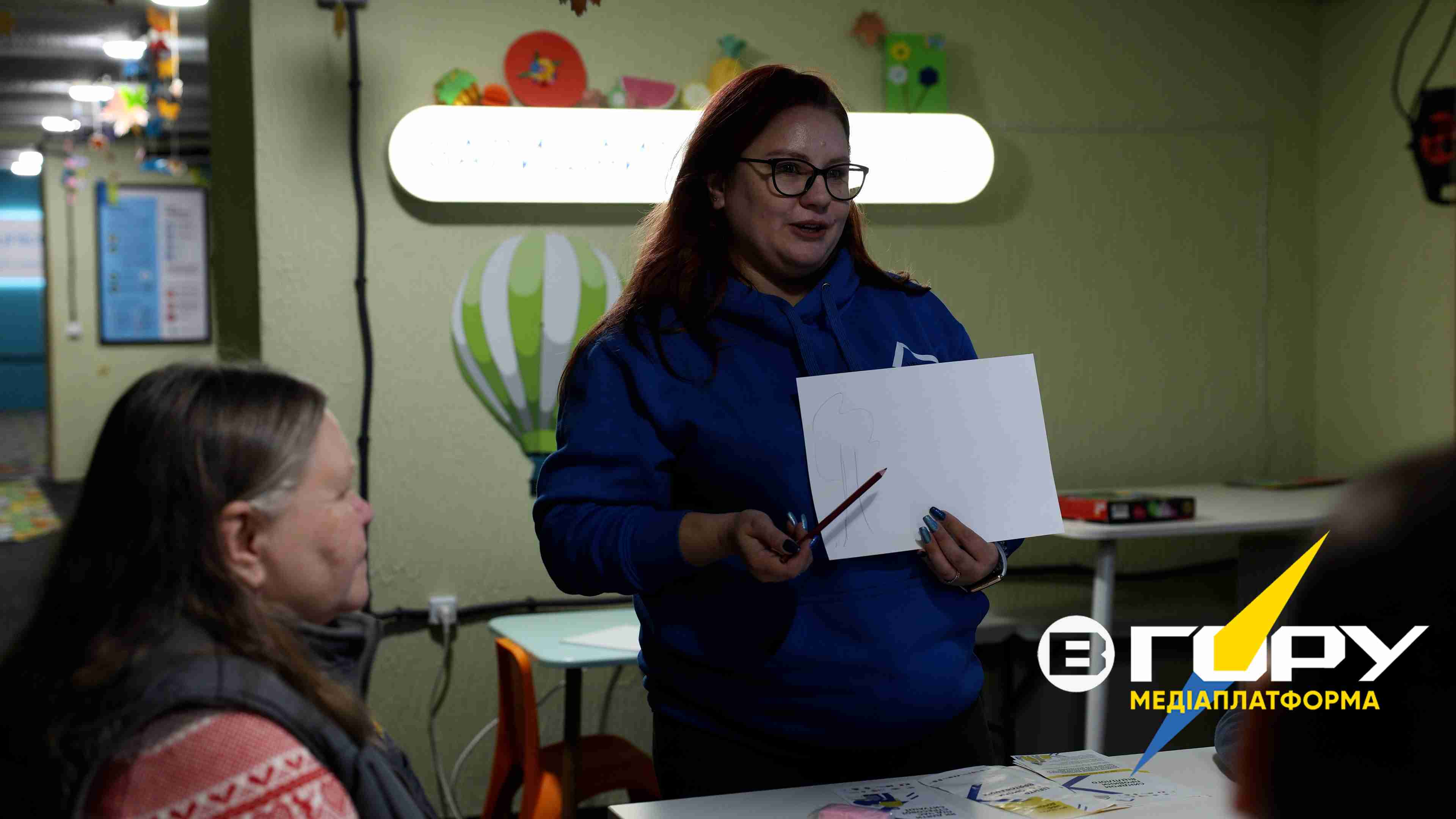 Психологиня Марина Козерацька в одному з безпечних просторів. Скрин відео Олександра Андрющенка/ Вгору