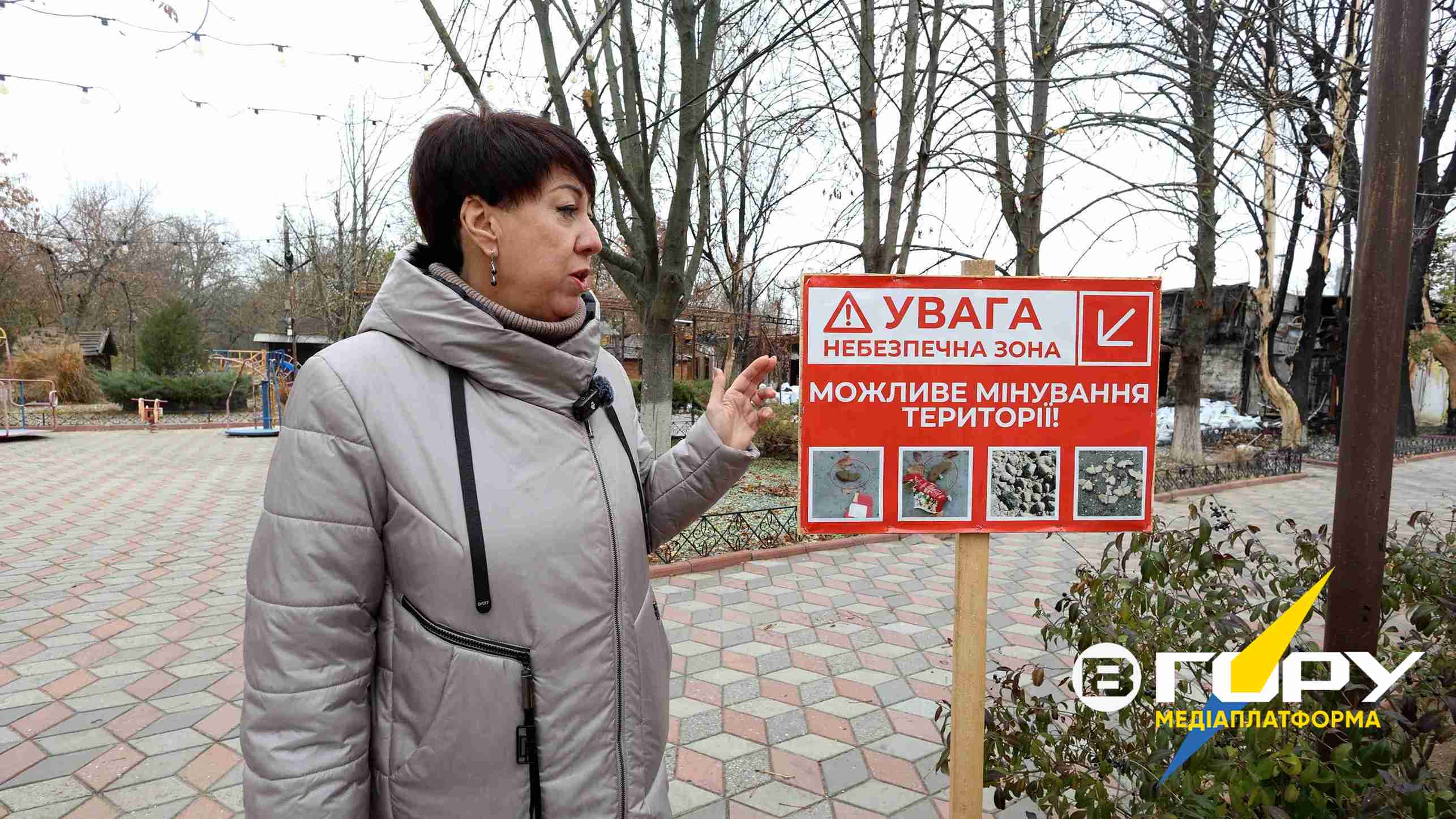 Наприклад, у парку Херсонська фортеця працівники Цивільного захисту розставили 8 таких табличок, вони біля кожного входу. Про це нашим журналістам розповіла заступниця начальника відділу з питань цивільного захисту Херсонської міської ради Ольга Ляшенко. Дуже небезпечна сьогодні й території парків Придніпровського та Шевченка. Там вже були помічені випадки дистанційного мінування.