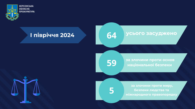 Основні зусилля органів прокуратури Херсонської області у першому півріччі 2024 року були спрямовані на те, щоб результати судових розглядів кримінальних проваджень сприяли забезпеченню правопорядку в суспільстві, невідворотності покарання за вчинення злочинів, відновленню порушених прав та законних інтересів громадян та держави.