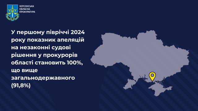 У кримінальних провадженнях незаконні судові рішення переглядались виключно за документами прокурорського реагування. У першому півріччі 2024 року показник апеляцій на незаконні судові рішення у прокурорів області становить 100%, що вище загальнодержавного показника (91,8%).