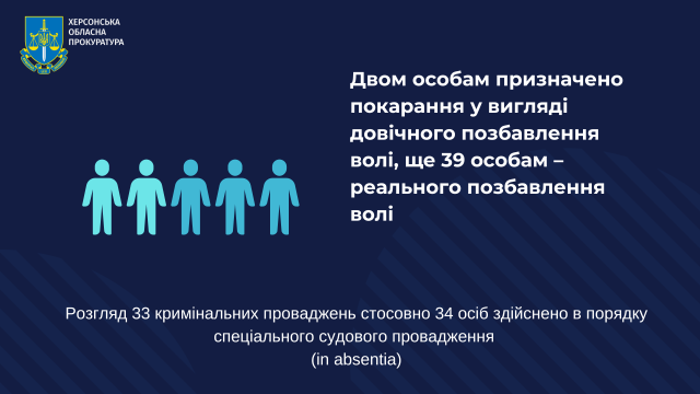Зокрема, за підтримання публічного обвинувачення прокурорами Херсонської обласної прокуратури в порядку спеціального судового провадження визнано винним колишнього поліцейського взводу охорони об’єктів та публічної безпеки Каховського районного відділу Управління поліції охорони у державній зраді (ч. 2 ст. 111 КК України).