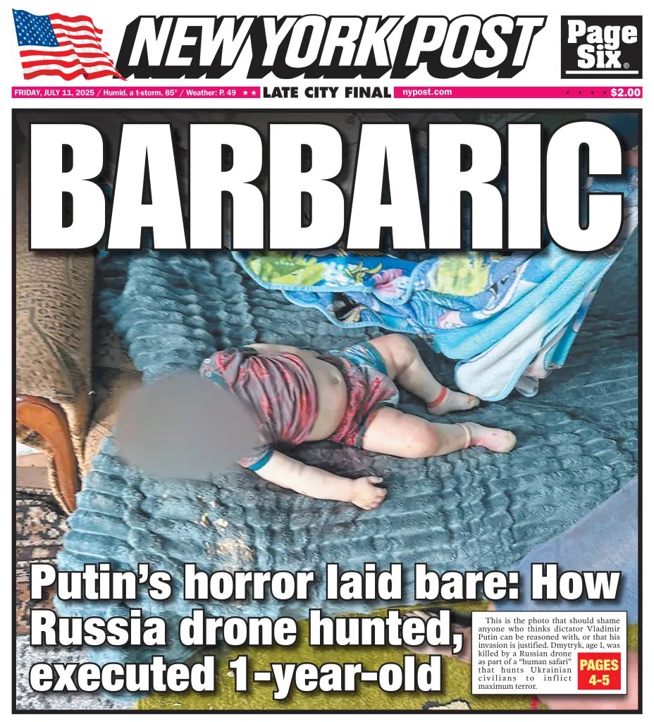 New York Post розмістило на обкладинці фото вбитого росіянами на Херсонщині однорічного хлопчика