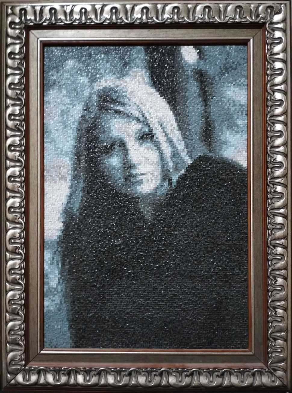 Попри відсутність художньої освіти, Євген тяжіє до творчості, якій і присвячує свій вільний час. Над цим мозаїчним портретом своєї доньки херсонець працював упродовж трьох років у перервах між основною роботою. Він навіть хотів запатентувати свою авторську технологію, але так і не встиг цього зробити до війни.