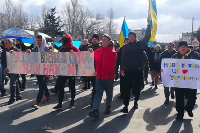 Проукраїнський мітинг 6 березня 2022 року в Новій Каховці Херсонської області. Фото з мережі