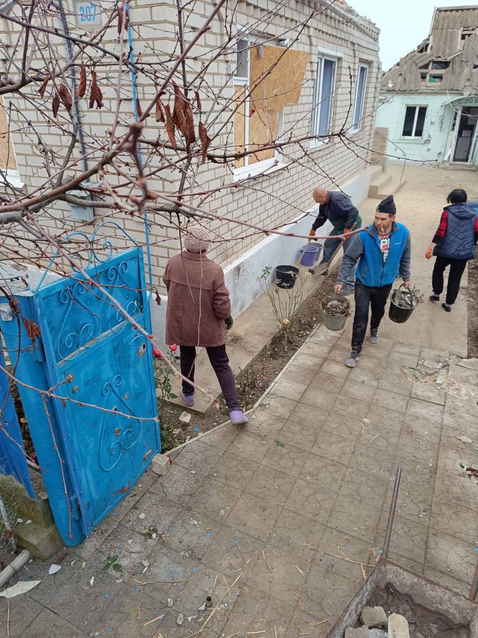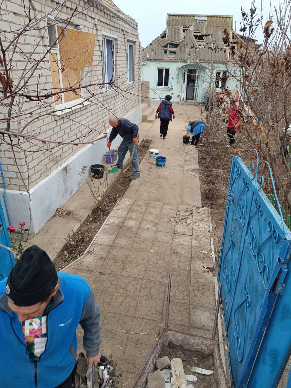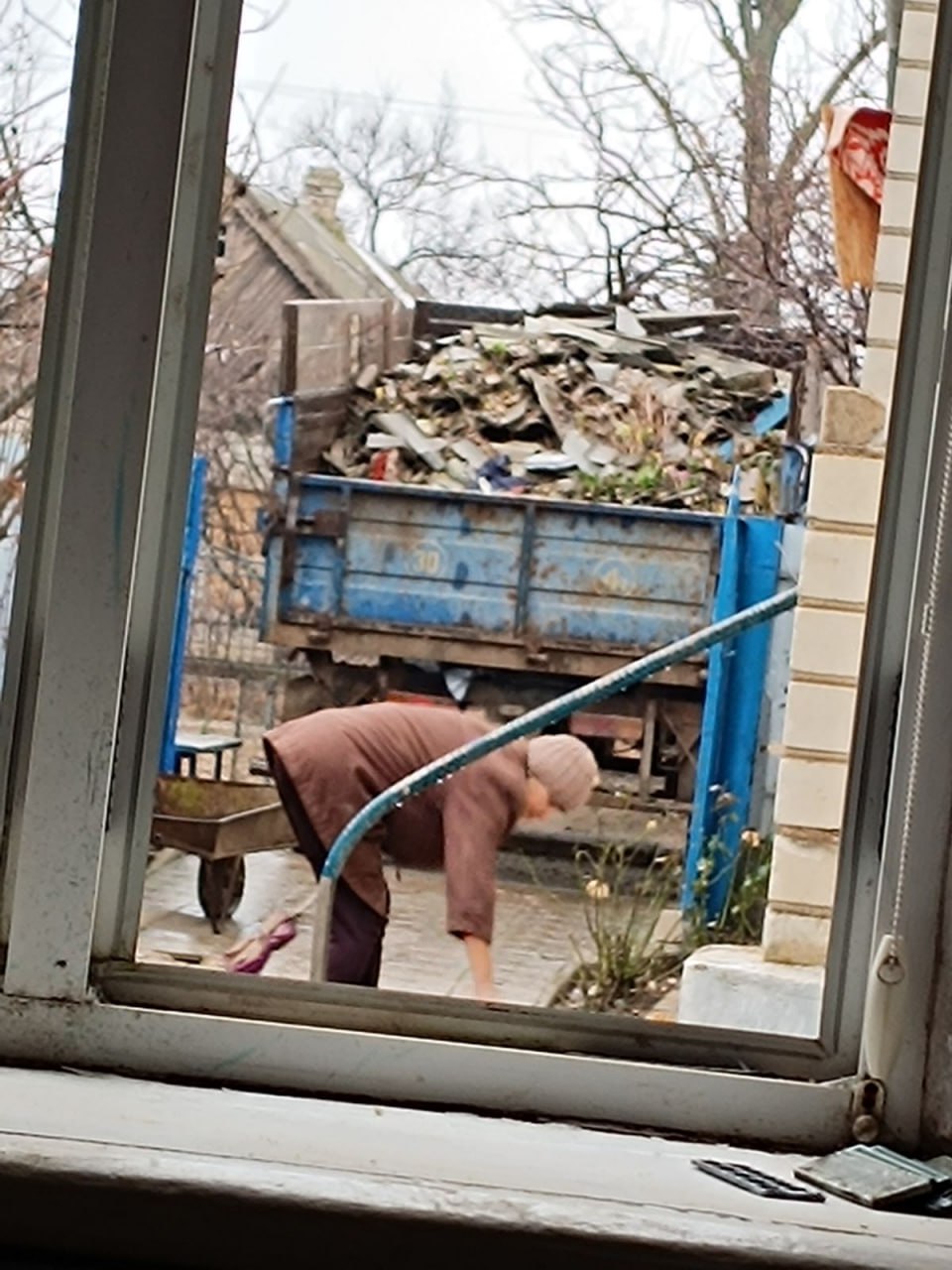 Уся вулиця Дмитра Яворницького прийшла до хати шановної людини, щоб допомогти родині розібрати сміття, позабивати потрощені вікна, очистити територію.