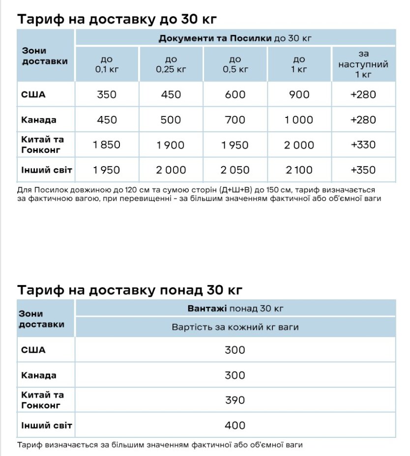 Тарифи тепер визначаються не в межах великих вагових категорій, як-от "до 2 кг" чи "до 10 кг", а точніше — за реальною вагою вантажу.