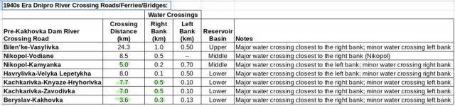 Базуючись на історичних даних і старих мапах, Хелмс стверджує, що у басейні Каховського водосховища на картах 1940-х років загалом позначені сім руслових переходів на ділянці від греблі Каховської ГЕС до Запоріжжя.