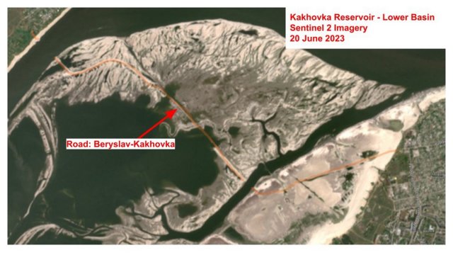 Нові знімки Каховського водосховища: OSINT-ери розгледіли на дні дорогу часів Другої світової