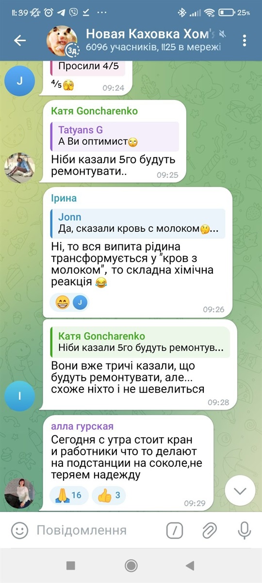 До чат-боту редакції Novakahovka.city звернулась мешканка з Білорусі, яка стурбована тим, що її друг лежить з температурою, оскільки він живе в районі Сокола, де немає світла.