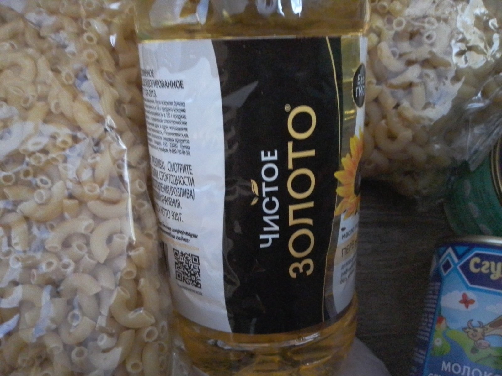 7) макаронні вироби 4 упаковки по 0,5 кг (дата виготовлення 12 жовтня 2021, термін придатності 24 місяців).