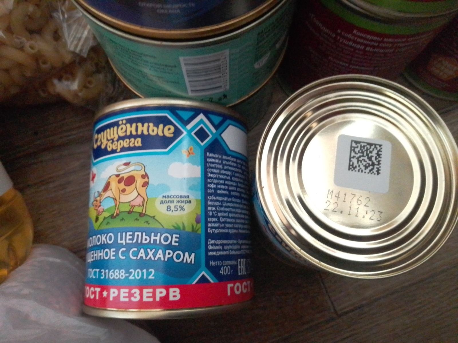4) 2 консерви згущеного молока (дата виготовлення 22 листопада 2023 року, строк придатності 24 місяців);