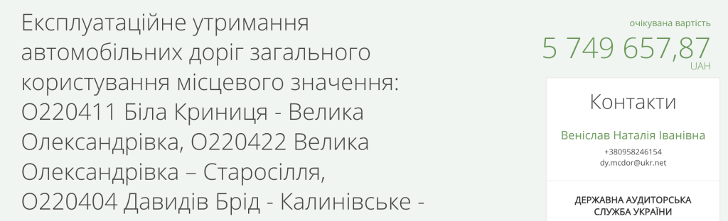 Про це свідчить відповідна інформація з порталу електронних закупівель “Prozorro”.