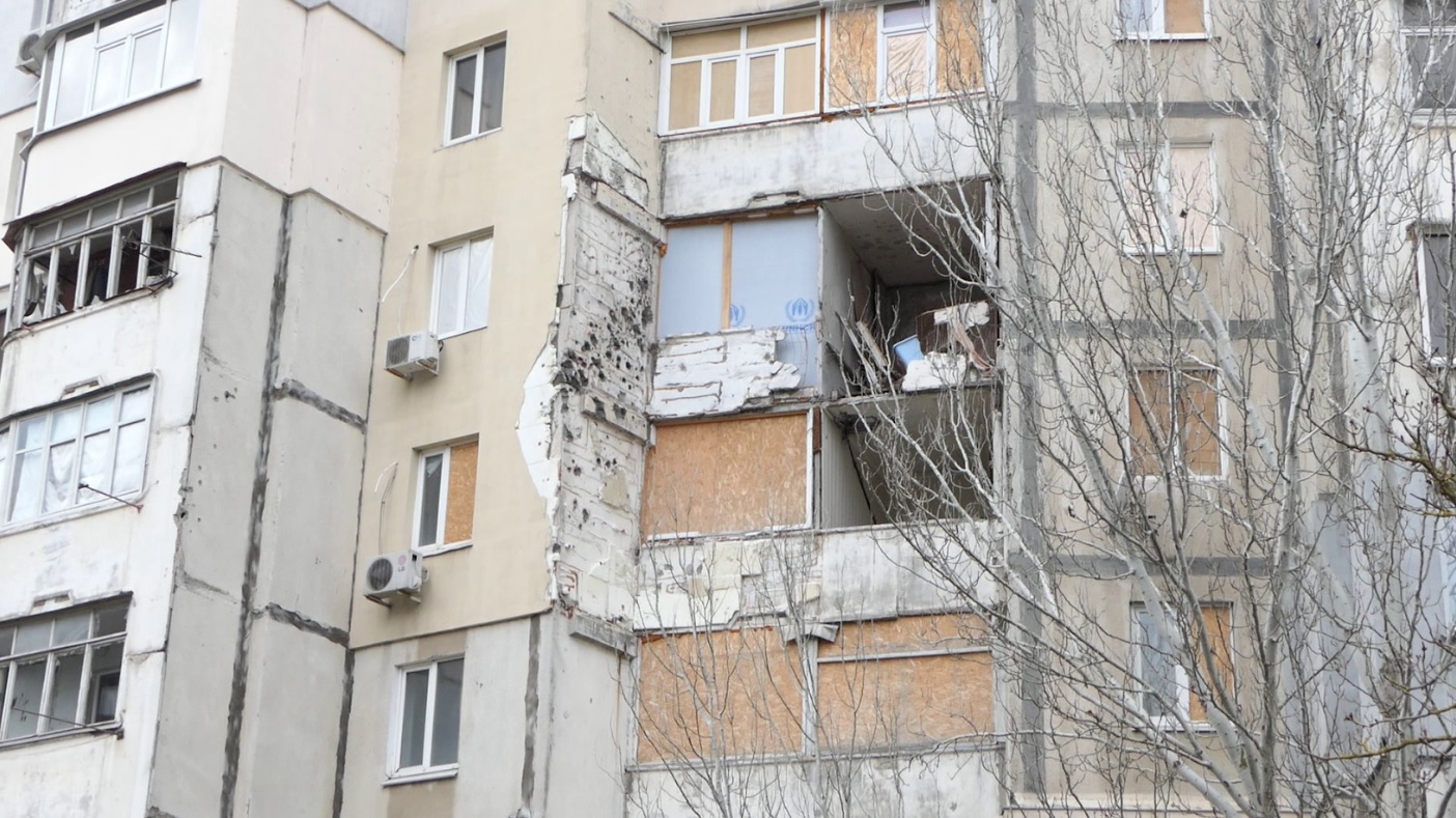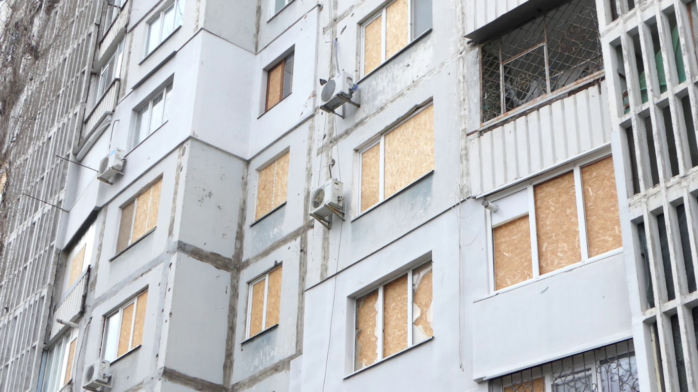 Будинки на «Острові» після російських обстрілів, лютий 2024 р. Фото: investigator.org.ua«Грілися хто чим міг. Газом, обігрівачами, вночі з пляшками гарячими спимо. Нічого – вижили. Це вже друга зима у нас така. Вже якось трошки втягнулися», – розповідає Людмила Михайлівна, жителька мікрорайону Корабел.