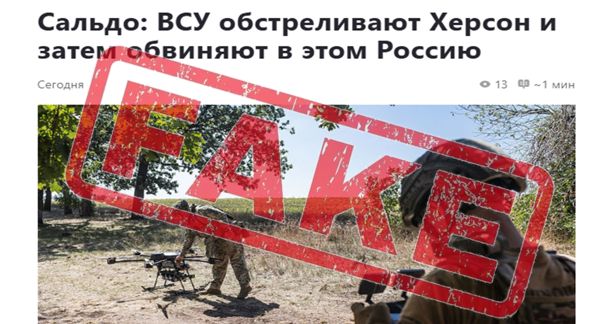 Росіяни продовжують обстрілювати цивільне населення та критичну інфраструктуру правобережжя Херсонської області. Паралельно з цим, деякі з них намагаються заперечити свої воєнні злочини. Наприклад, так званий “губернатор” лівобережжя регіону Володимир Сальдо заявляє, що по Херсону вогонь ведуть… українські військові. Таким чином ЗСУ нібито намагається дискредитувати армію РФ.
