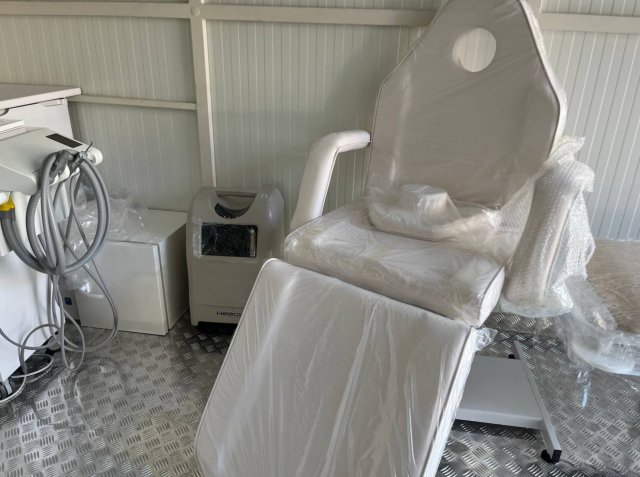 У мобільній клініці є як спеціалізоване обладнання (ШВЛ апарат, стоматологічна установка, дефібрилятор), так і обладнання діагностичного спрямування: для вимірювання тиску, портативний ультразвук, кардіограф, набір офтальмологічних лінз тощо. За потреби її можна дооснастити.