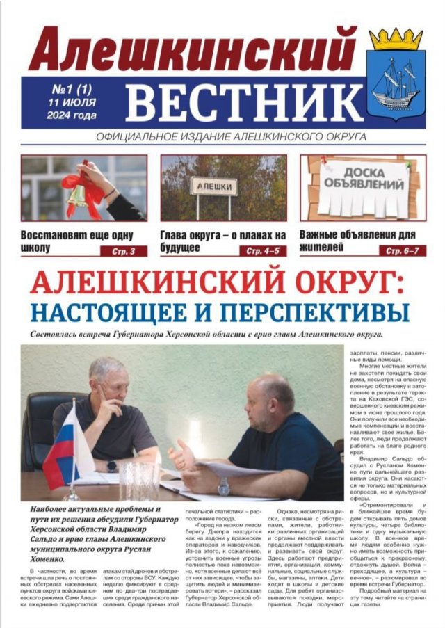 Тим часом колега Єрмишко - Євген Білий, який редагує окупаційну «Надднепрянскую правду» і низку агіток «муніципальних округів», заявив про випуск ще однієї. Назвали її без особливої фантазії - «Алешкинский вестник».