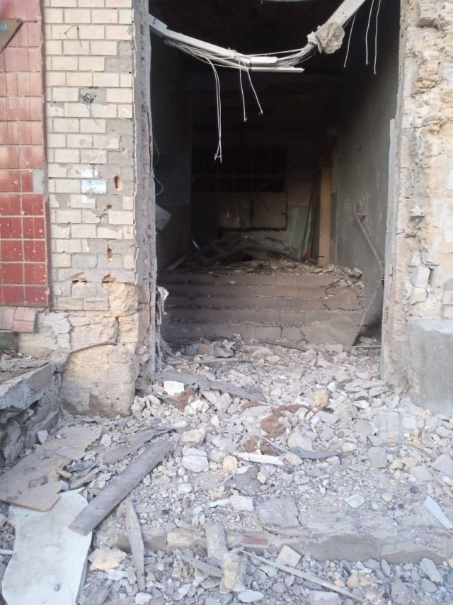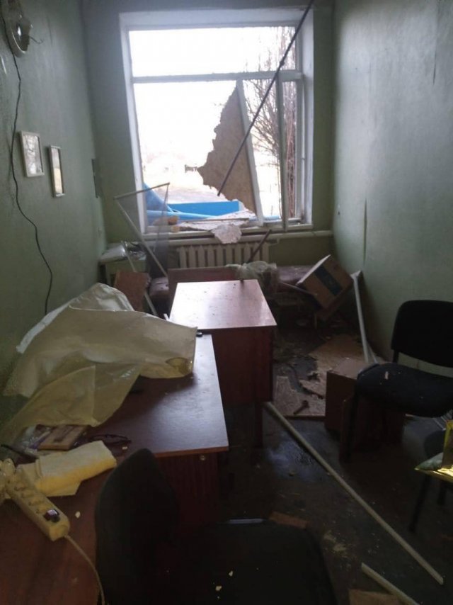 Внаслідок ударів пошкоджено вхід у приміщення. Інформація про потерпілих не надходила.