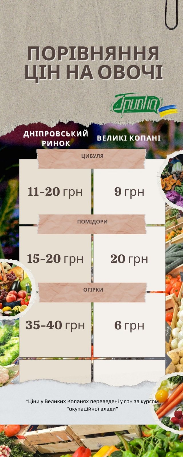 Окупанти грабують фермерів: порівнюємо вартість овочів у Херсоні та тимчасово окупованих Великих Копанях