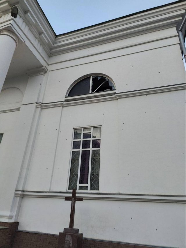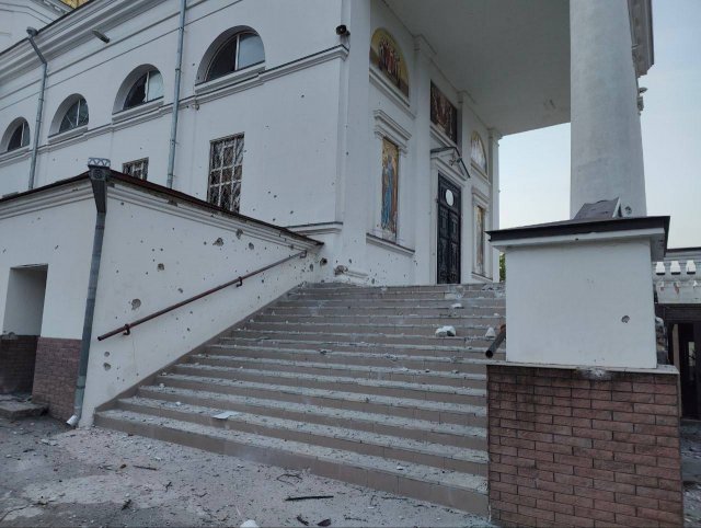 Снаряд влучив у підвальне приміщення єпархіального управління, а також на територію собору, внаслідок чого було пошкоджено центральний вхід, фасад, ризницю та підсобні приміщення, вибиті шибки у вікнах. Постраждалих немає.