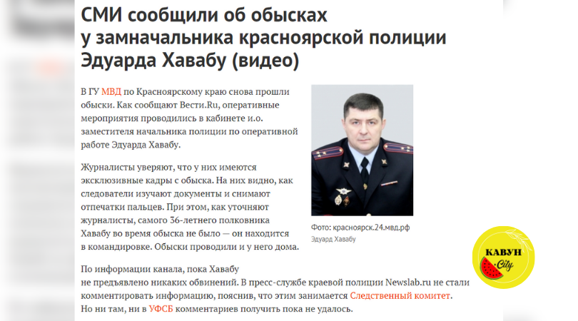Прикметно, що поки Едуард Хавабу грав на Херсонщині у футбол, в Красноярську відбувалися обшуки у квартирі такого собі Міхаіла Пріваліхіна — заступника начальника поліції Красноярського краю. Пріваліхін прийшов на цю посаду 2020 року за аналогічних обставин змінивши героя цієї публікації. Після низки затримань високопоставлених «правоохоронців» та обшуків у помешканні в самого Хавабу, того року чоловіка перевели на посаду в інший регіон московії. Та про це поговоримо згодом.