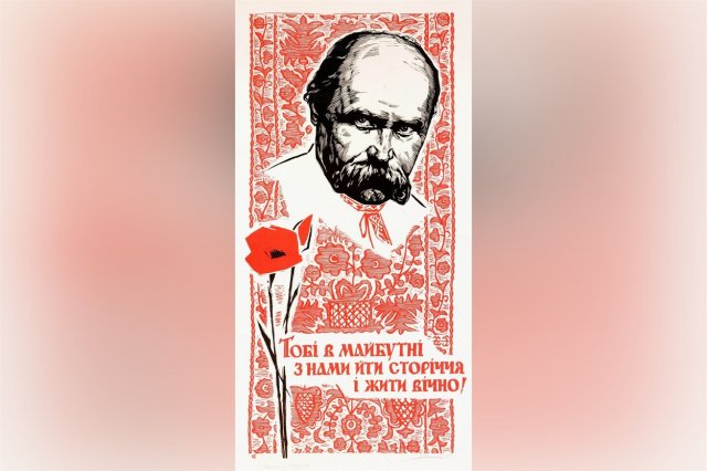 Постать цього українського графіка та педагога, якого і досі згадують як найкращого викладача, якого тільки можна собі уявити, була помітна серед харківських митців.Ігор Стаханов працював у жанрах пейзажу та натюрморту, був неперевершеним графіком, а справжнє визнання йому принесли масштабні офорти та гравюри. Такі, як ця кольорова ліногравюра, присвячена Тарасові Шевченку, який ніколи не втрачав статус духовного символу України. Детально пророблений штрихами портрет Кобзаря контрастує з червоним тлом — українським орнаментом, доповненим гаслом-цитатою, і немов виступає наперед, надаючи паперу тривимірності.