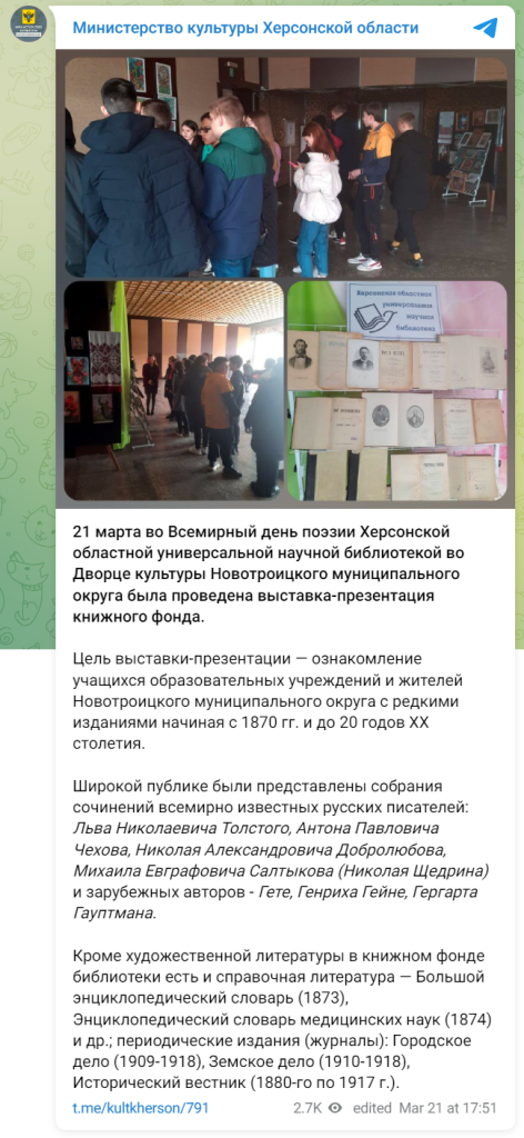 Окупанти «засвітили» рідкісні книги, вкрадені в Херсонській бібліотеці ім. Гончара