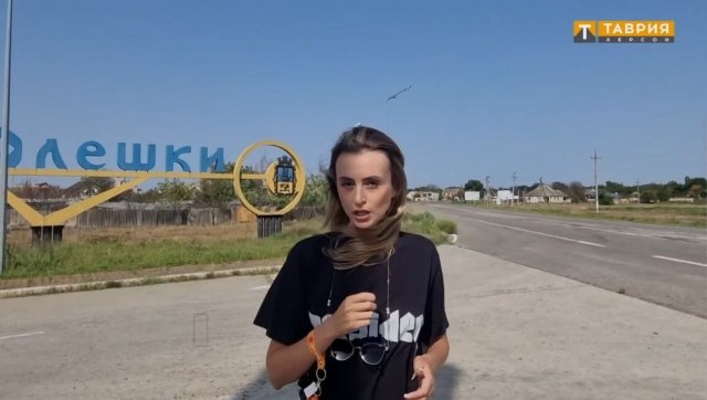 Пропагандистка анастасія бабір на прізвисько «владімірова», як могла, дивувалась на камеру: як, мовляв, українці можуть стріляти по місту, коли тут навіть «військових немає». Ще більше рашистку занепокоїло те, що бажаючих «евакуюватись» з Олешків «не так багато, тому автобус приїздить за людьми приблизно раз на два тижні».