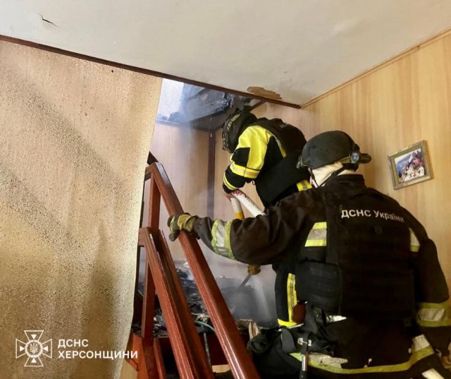 Сьогодні вдень в передмісті Херсона після скиду вибухівки з дрона загорівся житловий будинок. За викликом приїхав пожежно-рятувальний підрозділ та розпочав пожежогасіння.Про це повідомила пресслужба ДСНС Херсонської області.