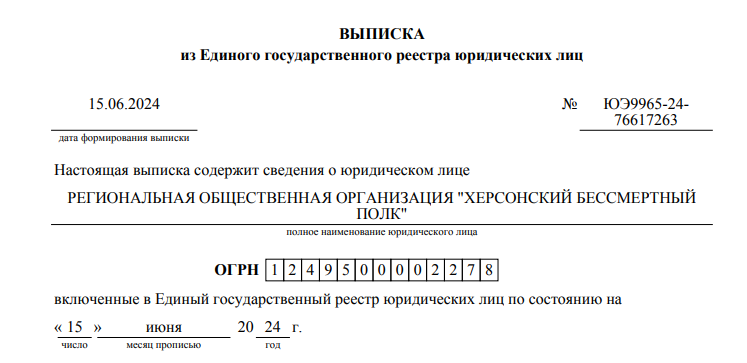 Про це свідчить виписка з російського Єдиного державного реєстру юридичних осіб.