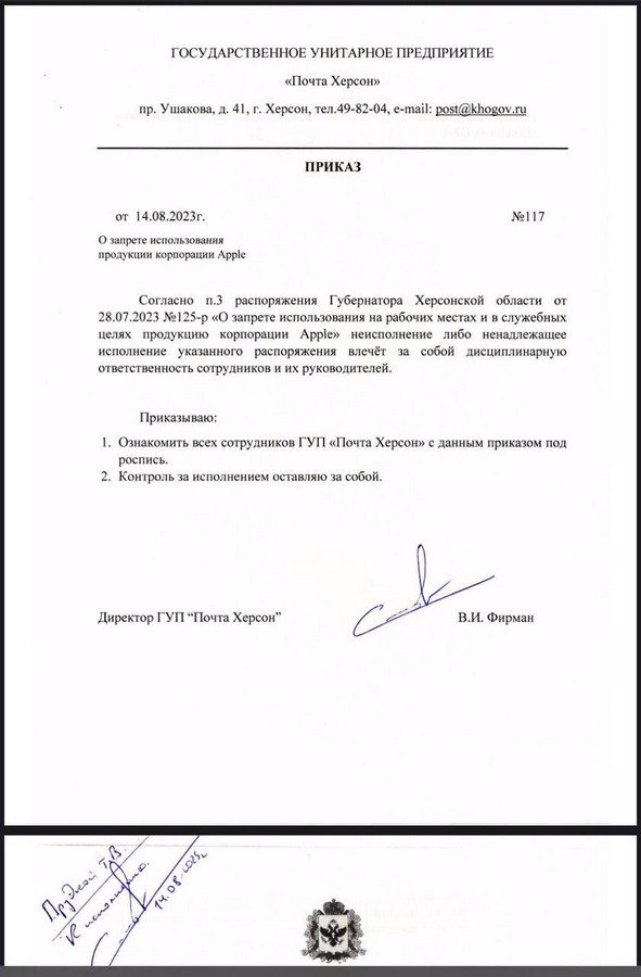 Слід відзначити, що цей "документ" підписав зрадник - колишній директор Херсонської дирекції "Укрпошти" Віктор Фірман.За даними Офісу Генерального прокурора, Фірману інкримінують ряд дій, які спрямовані на пособництво Росії.