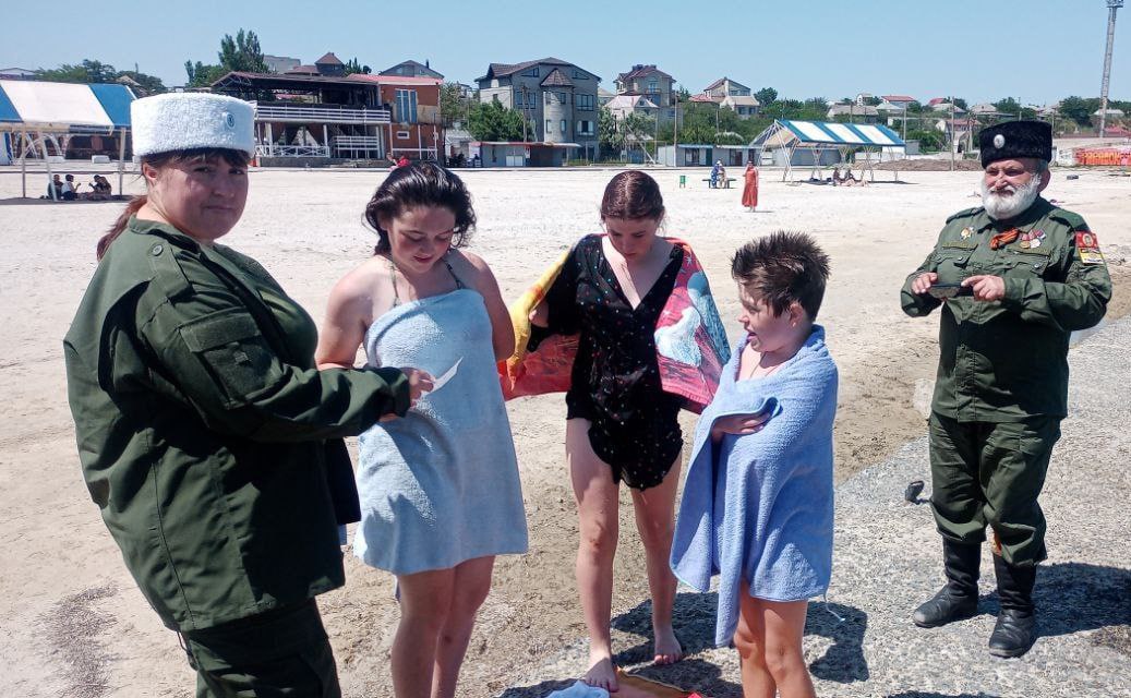 Поки окупаційні козаки лиш проходять підготовку, на фронт їх беруть ще за власним бажанням. Що вони роблять у тилу? Наприклад, заважають поодиноким відпочивальникам на пляжах Генічеська. Недавно провели «рейд з безпеки» на центральному пляжі. «Припинено 2 випадка розпиття спиртних напоїв, – повідомив після цього окупаційний телеграм-канал «Геническ онлайн», – роздано 34 пам’ятки про безпеку, проведено 14 профілактичних бесід».